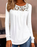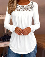 SPECIFICATIONS Top Type: Blouses Style: Casual Material: Cotton Blends,Lace Occasion: Daily Neckline: Round Neck Pattern Type: Solid Color Sleeve Type: Regular sleeve Sleeve Length: Long Sleeve Fit Type: Regular Season: Fall,Winter Details: Lace Package Includes: 1 x Blouse SIZE TABLE Size Bust Length CM INCH CM INCH S 92 36.22 65 25....