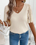 SPECIFICATIONS Top Type: T-shirt Style: Casual Material: Cotton Blends Occasion: Daily Neckline: Round Neck Pattern Type: Solid Color Sleeve Type: Regular sleeve Sleeve Length: Short Sleeve Fit Type: Regular Season: Spring,Summer Details: Lace Package Includes: 1 x T-shirt SIZE TABLE Size Bust Length CM INCH CM INCH S 97 38.19 68...