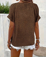 V-Neck Short-Sleeve Ruffled Blouse