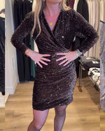 SPECIFICATIONS Style: Casual Material: Cotton Blends,Sequins Dress Length: Knee Length Neckline: Round Neck Pattern Type: Solid Color Sleeve Type: Regular sleeve Sleeve Length: Long Sleeve Details: Irregular Fit Type: Loose Season: Fall,Winter Occasion: Daily Package Includes: 1 x Dress SIZE TABLE Size Bust Length CM INCH CM INCH ...