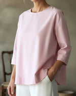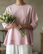 SPECIFICATIONS Top Type: Tops Material: Cotton Occasion: Daily Neckline: Round Neck Sleeve Type: Lantern Sleeve Sleeve Length: 3/4 Sleeve Fit Type: Regular Season: Spring,Summer Package Includes: 1 x Top SIZE TABLE Size Bust Length CM INCH CM INCH S 104 40.94 65 25.59 M 108 42.52 66.5 26.18 L 112 44.09 68 26.77 X...