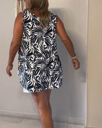 SPECIFICATIONS Style: Casual Material: Cotton Blends Dress Type: Shift dress Dress Length: Knee Length Neckline: Round Neck Pattern Type: Print Sleeve Type: Ruffle Sleeve Sleeve Length: Sleeveless Fit Type: Regular Season: Spring,Summer Occasion: Daily Package Includes: 1 x Dress SIZE TABLE Size Bust Length CM INCH CM INCH S 97 3...