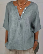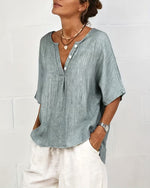 SPECIFICATIONS Top Type: Tops Style: Casual Material: Cotton Blends Occasion: Daily Neckline: V neck_V Pattern Type: Solid Color Sleeve Type: Regular sleeve Sleeve Length: Long Sleeve Fit Type: Regular Season: Spring,Summer Package Includes: 1 x Top SIZE TABLE Size Bust Length CM INCH CM INCH S 97 38.19 65 25.59 M 101 39.76 66...