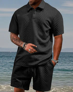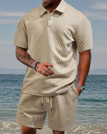 Herren Casual Waffel Shirt Hosen 2-Teiliges Set