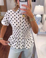 SPECIFICATIONS Top Type: Blouses Style: Elegant Material: Cotton Blends Occasion: Daily Neckline: V neck_V Pattern Type: Leopard Sleeve Type: Ruffle Sleeve Sleeve Length: Short Sleeve Fit Type: Regular Season: Spring,Summer Details: Buttons,Ruffle Package Includes: 1 x Blouse SIZE TABLE Size Bust Length CM INCH CM INCH S 97 38.1...