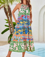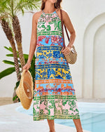 Sleeveless Slim-Fitting Strappy Cashew Flower Dress