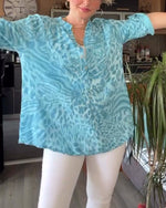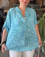 V-Neck Leopard Print Mesh Sequined Patchwork Top