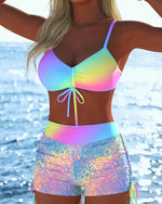SPECIFICATIONS Style: Sexy Material: 15% Spandex,85% Polyester Occasion: Vacation Neckline: Spaghetti Straps Pattern Type: Striped Sleeve Length: Sleeveless Top Type: Bikini Bra Type: Wireless Bra Bottom Type: Natural Fit Type: Skinny Season: Spring,Summer,Fall,Winter Details: Lace Up,Shirred Package Includes: 1 x Bikini SIZE TABLE Size Bust...