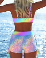 SPECIFICATIONS Style: Sexy Material: 15% Spandex,85% Polyester Occasion: Vacation Pattern Type: Print,Star Sleeve Length: Sleeveless Top Type: Bikini Bra Type: Wireless Bra Bottom Type: Natural Fit Type: Skinny Season: Spring,Summer,Fall,Winter Details: Lace Up Package Includes: 1 x Bikini SIZE TABLE Size Bust Waist Hip Under bust CM INCH ...