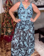 Abstract Floral Print Sleeveless Dress