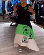 Round neck loose patchwork color print dress