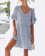 Ruffled sleeves V-neck floral print dress