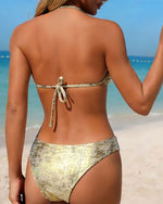 Jacquard Halter Neck Tie Two-Piece Bikini