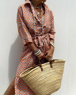 SPECIFICATIONS Style: Casual Material: Cotton Blends Dress Type: Shift dress Dress Length: Maxi Neckline: V neck_V Pattern Type: Plaid,Print Sleeve Type: Regular sleeve Sleeve Length: 3/4 Sleeve Fit Type: Regular Season: Spring,Summer Occasion: Daily Package Includes: 1 x Dress SIZE TABLE Size Bust Length CM INCH CM INCH S 97 38.19 13...