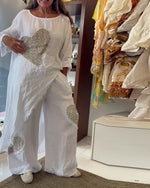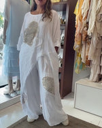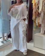 SPECIFICATIONS Style: Casual Material: Cotton Blends Pattern Type: Solid Color Pants Type: Wide Leg Pants Length: Long Waist Type: Mid Waist Fit Type: Regular Season: Spring,Summer Details: Lace Occasion: Daily Package Includes: 1 x Pants SIZE TABLE Size Waist Hip Length CM INCH CM INCH CM INCH S 67 26.38 98 38.58 98 38.58 M 72 28.3...