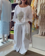 Lace Patchwork Wide-Leg Pants