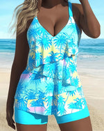 Vest-Style Split Printed Flat-Angle Tankini