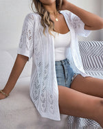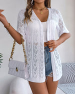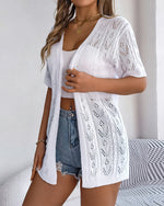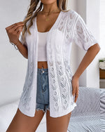 Solid color hollow short sleeve elegant cardigan