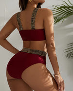 Halterneck Leopard Print Metal Buckle Bikini