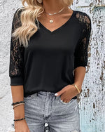 Solid Color Patchwork Three-Quarter Sleeve Top