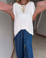 Loose-Fitting Velvet Three-Quarter Sleeve Blouse