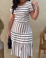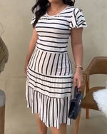Polka Dot Short-Sleeved Fitted A-Line Dress