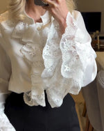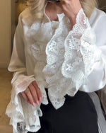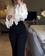 Ruffled Long-Sleeved Solid-Color Collared Blouse