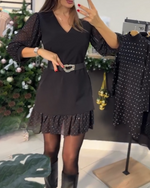 V-Neck Fine Glitter Mesh Patchwork Loose Dress