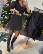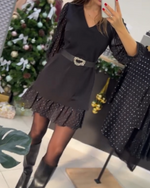SPECIFICATIONS Style: Casual Material: Cotton Blends Dress Type: A-Line Dress Length: Above-knee Neckline: V neck_V Pattern Type: Solid Color Sleeve Type: Regular sleeve Sleeve Length: Long Sleeve Details: Ruffle Fit Type: Regular Season: Fall,Winter Occasion: Daily Package Includes: 1 x Dress SIZE TABLE Size Bust Length CM INCH CM INCH...