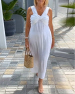 V-Neck Single-Breasted Sleeveless Dress