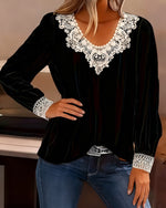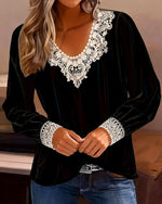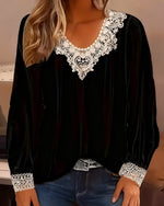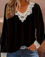 SPECIFICATIONS Top Type: Blouses Style: Casual Material: Cotton Blends,Lace Occasion: Daily Neckline: V neck_V Pattern Type: Solid Color Sleeve Type: Regular sleeve Sleeve Length: Long Sleeve Fit Type: Regular Season: Fall,Winter Details: Lace Package Includes: 1 x Blouse SIZE TABLE Size Bust Length CM INCH CM INCH S 92 36.22 65 25.59...