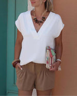 V-neck short-sleeved solid color blouse