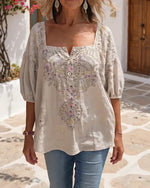 SPECIFICATIONS Top Type: Blouses Style: Casual Material: Lace,Cotton and linen Occasion: Daily Neckline: Square Neck Sleeve Type: Puff Sleeve Sleeve Length: 3/4 Sleeve Fit Type: Regular Season: Spring,Summer Details: Lace Package Includes: 1 x Blouse SIZE TABLE Size Bust Length CM INCH CM INCH S 97 38.19 65 25.59 M 101 39.76 6...