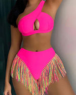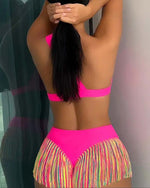 NEW Icon1 Women's Solid Color Tassel Trim Bikini Set