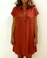 SPECIFICATIONS Style: Casual Material: Cotton and linen Dress Type: Cami Dress Length: Above-knee Neckline: Square Neck Pattern Type: Solid Color Details: Pocket,Zipper Fit Type: Regular Season: Spring,Summer Occasion: Daily Package Includes: 1 x Dress SIZE TABLE Size Bust Length CM INCH CM INCH S 92 36.22 83 32.68 M 96 37.8...