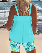 SPECIFICATIONS Style: Vacation Material: 15% Spandex,85% Polyester Occasion: Vacation Neckline: U Neck_U Pattern Type: Print Sleeve Length: Sleeveless Top Type: Tankini Bra Type: Wireless Bra Bottom Type: Shorts Fit Type: Regular Season: Spring,Summer Package Includes: 1 x Tankini SIZE TABLE Size Bust Waist Hip Under bust CM INCH CM INCH C...