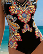 V-Neck Printed Tankini Swimsuit