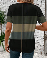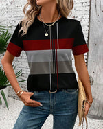 Round Neck Short Sleeve Contrast Color T-Shirt