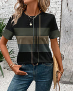 Aumora Round Neck Short Sleeve Striped T-Shirt