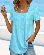 SPECIFICATIONS Top Type: T-shirt Style: Elegant Material: Cotton Blends Occasion: Daily, Work Neckline: Square Neck Pattern Type: Solid Color Sleeve Type: Regular sleeve Sleeve Length: Short Sleeve Fit Type: Regular Season: Spring, Summer, Fall Details: Shirred Package Includes: 1 x T-shirt SIZE TABLE Size Bust Length CM INCH...