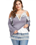 V-neck lace long-sleeve top