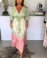 SPECIFICATIONS Style: Casual Material: 5% Spandex, 95% Polyester Dress Type: A-Line Dress Length: Knee Length Neckline: V neck_V Pattern Type: Print Sleeve Type: Flare Sleeve Sleeve Length: 3/4 Sleeve Fit Type: Regular Season: Spring, Summer Occasion: Daily Package Includes: 1 x Dress SIZE TABLE Size Bust Length Sleeve le...