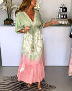 SPECIFICATIONS Style: Casual, Vacation Dress Type: A-Line Dress Length: Maxi Neckline: V neck_V Pattern Type: Print Sleeve Type: Lantern Sleeve Details: Drawstring Fit Type: Regular Material: 95% polyester, 5% spandex Season: Spring, Summer, Fall Occasion: Daily, Vacation Package Includes: 1 x Dress SIZE TABLE (cm) Size Bust Length Sho...