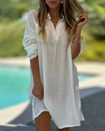 Loose Short Sleeve Solid Color Cotton and Linen Shirt Dress