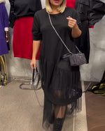 SPECIFICATIONS Style: Elegant Material: Chiffon, Polyester Dress Type: Shift dress Dress Length: Midi Neckline: Round Neck Pattern Type: Solid Color Sleeve Type: Regular sleeve Sleeve Length: Short Sleeve Details: Patchwork, Hollow Out Fit Type: Regular Season: Spring, Summer, Fall Occasion: Daily Package Includes: 1 x Dress SIZE TABLE ...