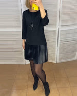 SPECIFICATIONS Style: Elegant, Business Material: 95% polyester, 5% spandex Dress Type: Shift dress Dress Length: Knee Length Neckline: Round Neck Pattern Type: Solid Color Sleeve Type: Regular sleeve Sleeve Length: Long Sleeve Details: Patchwork, See-through Fit Type: Regular Season: Spring, Fall, Winter Occasion: Daily, Work Package Include...