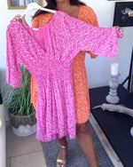 Printed V-neck Flare Sleeve Dress