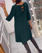 SPECIFICATIONS Style: Elegant, Business Material: 95% Polyester, 5% Spandex Dress Type: A-Line Dress Length: Knee Length Neckline: Round Neck Pattern Type: Solid Color Sleeve Type: Regular sleeve Sleeve Length: Long Sleeve Details: Zipper Fit Type: Regular Season: Spring, Fall, Winter Occasion: Daily, Work Package Includes: 1 x Dress SIZE...
