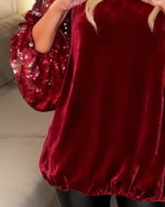 Solid Color Long-Sleeved Sequined Patchwork Top