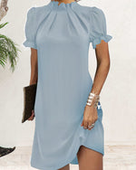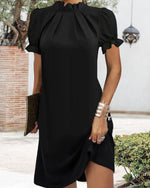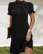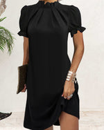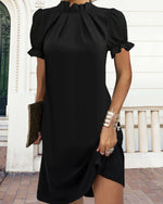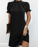 SPECIFICATIONS Style: Elegant Material: Chiffon, Polyester Dress Type: Shift dress Dress Length: Midi Neckline: Round Neck Pattern Type: Solid Color Sleeve Type: Regular sleeve Sleeve Length: Short Sleeve Details: Patchwork, Hollow Out Fit Type: Regular Season: Spring, Summer, Fall Occasion: Daily Package Includes: 1 x Dress SIZE TABLE ...